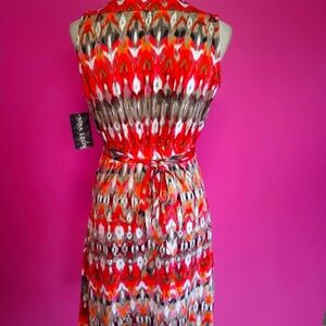 Nina Leonard Orange Multicolor Beaded Summer Dress (Size Small) (NWT!)