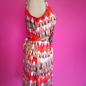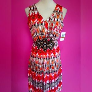 Nina Leonard Orange Multicolor Beaded Summer Dress (Size Small) (NWT!)