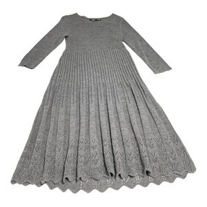 Nina Leonard Paris Gray Knit Pleated Sweater Dress Size M