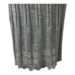 Elegant Nina Leonard Paris gray knit sweater dress featuring a beautifully pleated skirt and subtle scalloped hem detailing. Crafted from 100% acrylic for a soft, cozy feel, this mid-length dress offers a flattering fit with a round neckline and long sleeves. Perfect for cool-weather wear and easy to style with boots or heels.