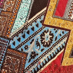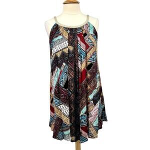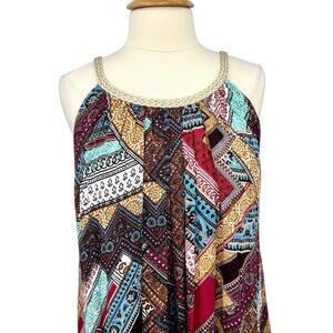 Nina Leonard Patchwork Swing Dress Braided Gold Straps Size M Boho Artsy Earthy