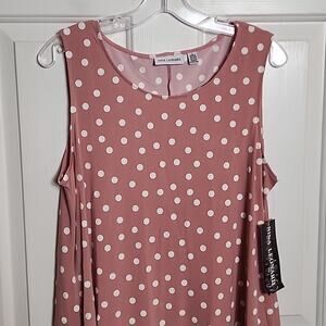 Nina Leonard Pink/White Polka Dot Pull On Dress, NWT, Large
