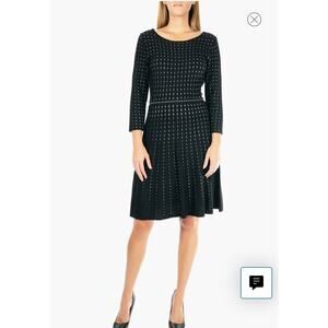 Nina Leonard Pleated Dot Sweater Dress Size Medium