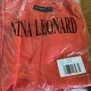Nina Leonard Red Orange Bubble Sleeve Trapeze Dress Knee Length Medium