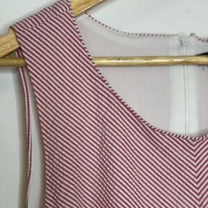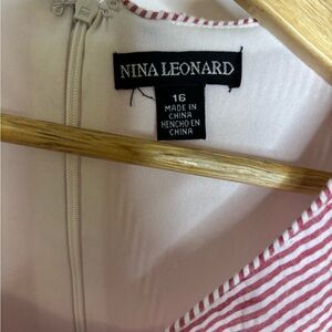 Nina Leonard size 16 red and white striped seersucker summer sleeveless dress with tiered hemline. Zip back. Excellent condition. Cotton blend. (M)