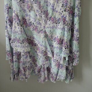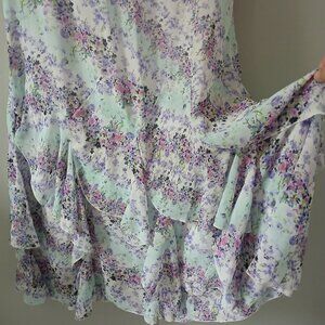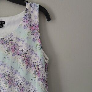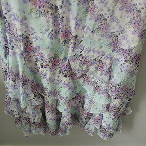 Nina Leonard Size 12 Sleeveless Midi Layered Ruffle Hem Dress Floral Blue Pink