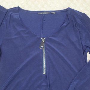Nina Leonard Size S Navy Blue Knit Swing Zipper Front Dress