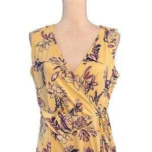 Nina Leonard Sleeveless Faux Wrap Maxi Dress Women’s SZ Large in Yellow Floral
