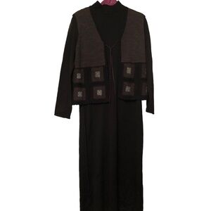 Nina Leonard Sweater Dress with Attached Crocheted Vest