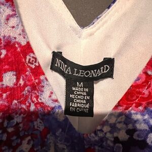 Nina Leonard Vibrant Red and Blue Maxi Dress