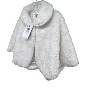 Nina Leonard White Faux Fur Capelet Wrap Jacket Coat Small Button Up Bling New