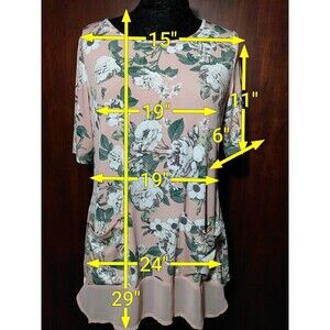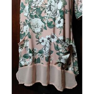 Nina Leonard Women Pink Floral Sheer Hem Pockets Short sleeve Tunic‎ Size M