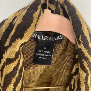 Nina Leonard Women's Brown Tan Tiger Print Open Front Long Sleeve Cardigan Sz 1X