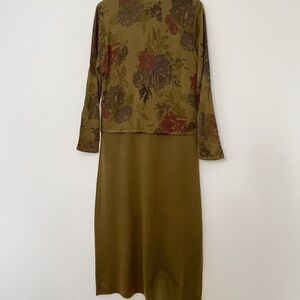 Olive green with black, burgundy flowers