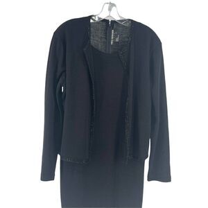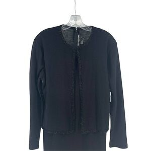 Nina Leonard Dress Black Wool Blend Layered Look Beaded Knee Length Size Medium