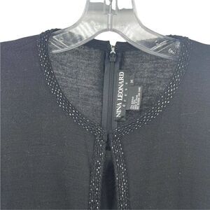 Nina Leonard Dress Black Wool Blend Layered Look Beaded Trim Knee Length Classic Padded Shoulders Career Casual