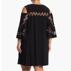 Keywords: Plus Size Dress, Cold-Shoulder Dress, 3X Black Dress, Jewel Neckline, Versatile Style, Semi-Formal Dress, Date Night Outfit, NWOT