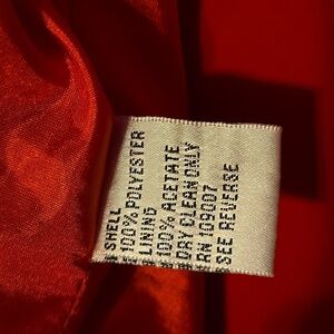 This vibrant red blazer with a classic notched collar and silky lining would be a striking addition to any wardrobe, especially for professional or formal occasions.