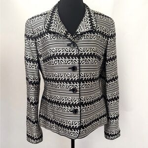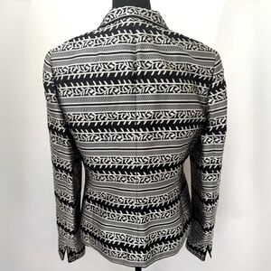 Nina McLemore 100% Silk Patterned Botton-Down Blazer Jacket, Black/Cream Size 6