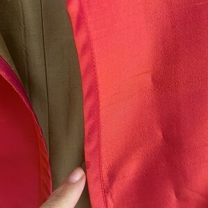 Nina McLemore red pink blazer jacket. The first two photos show the true pink red color. Has built in shoulder pads 100% Silk Blazer Jacket. Has a small hard to notice mark about halfway down, see photo where I point it out.