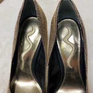 Nina Metallic Gold Studded Heels Pumps, size 7.5