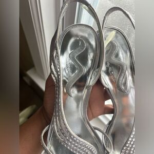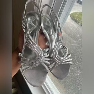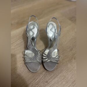 Nina Metallic Silver strappy dress heels size 9
