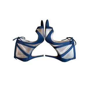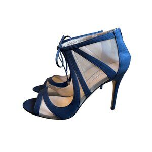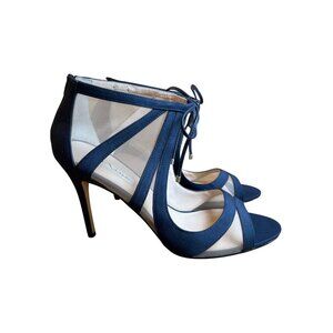 Nina NY Cherie Size 11 Strappy Mesh Tie Peep Toe Dress Heels Sandals Leather Tie