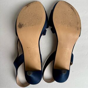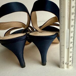 Nina Navy Blue Satin Asymmetrical Rhinestone Shoes Homecoming Sandals Heels Sz 8