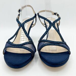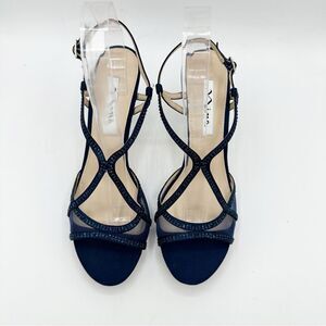 Nina Navy Blue Satin Blossom Slingback Crystal Open Toe Evening Sandal Prom 8.5