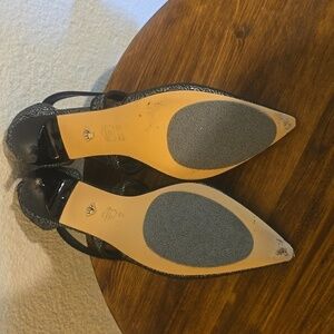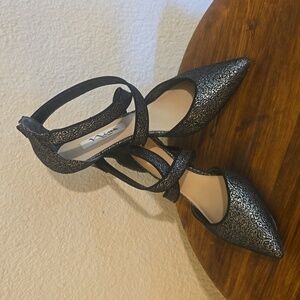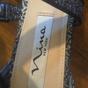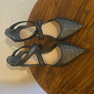 Nina New York Black & Silver Jacquard SLIP on Back Zip HEELS Fancy! SZ.8