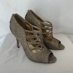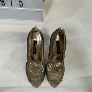 Nina Heels Gold Size 8 4” heel Zipper in back Lightly worn