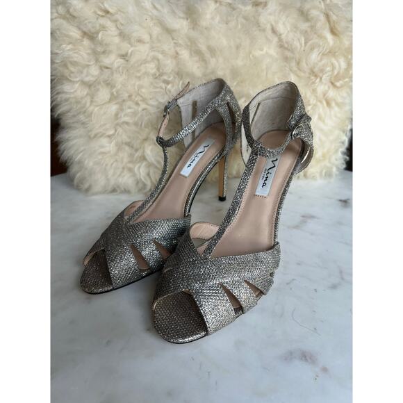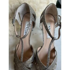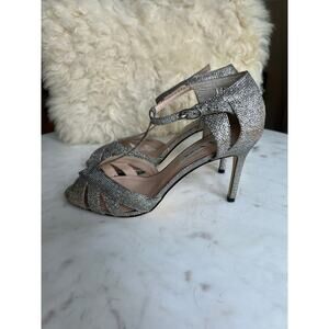 Nina New York Silver Sparkle Strappy Heels 9.5