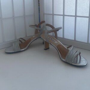 Nina New York Silver and Rhinestone 2 1/2" Heels SZ 8.5
