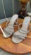 Nina New York Suede & Crystal Sandals Size 7 3.5” Block Heel Neutral Rhinestone