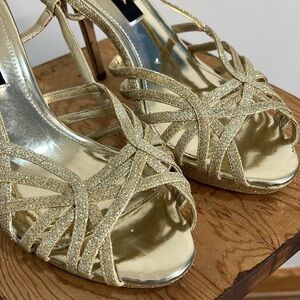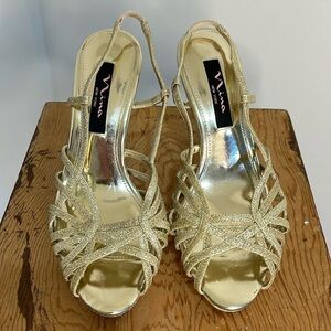 Nina New York Womens Gold Metallic High Heel Sling Backs Size 7.5 Prom Formal