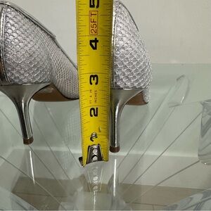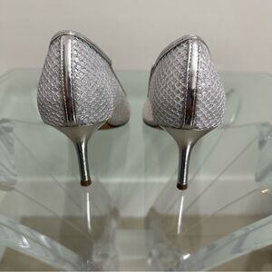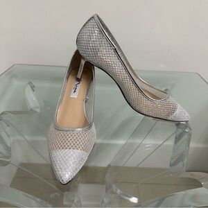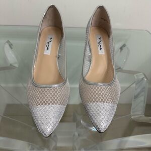 Nina New York Womens Silver Mesh Niley Kitten Heel Pumps SZ 8 Floor Sample Are NEW.