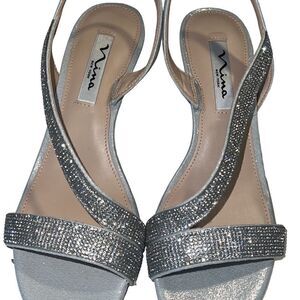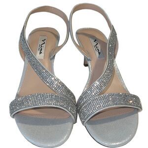 Nina Nieves True Silver Reflective Crystals Sling-back Sandals Size 7.5 NIB