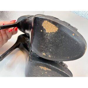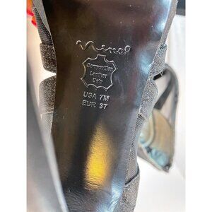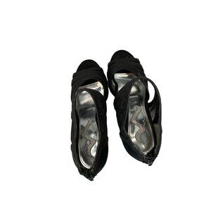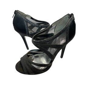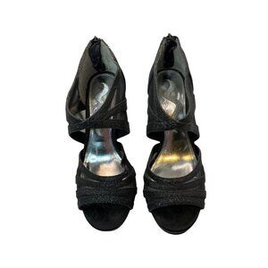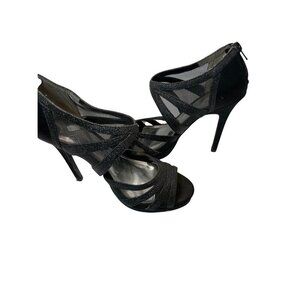 Nina Open Toed Sparkly Black Mesh Slip On 4 Inch Heels Sz 7
