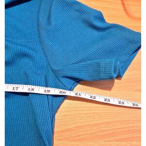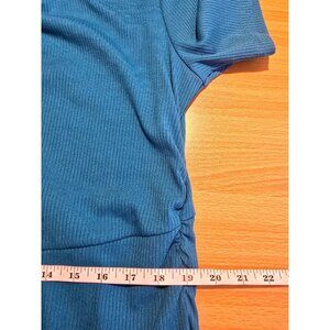 Nina Parker Midi Dress 2X Blue Cut Out Stretch Ribbed Ruched Short Sleeve Casual