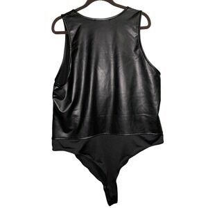 Nina Parker Plus Size Pleather Tank Scoop-Neck Bodysuit Black 3X