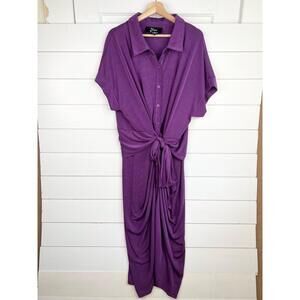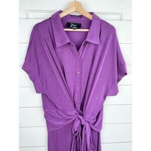 Nina Parker Purple Button Down Tie Waist Ruched Draped Shirt Dress Size 4X