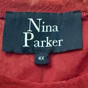 Nina Parker Women’s Red Printed Sheer Party Top – Size 4X (NWT)