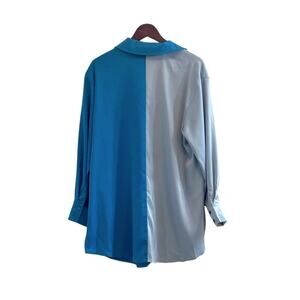 Nina Parker Womens Size 0X Blue Colorblock Button Down Blouse Long Sleeve NEW