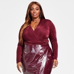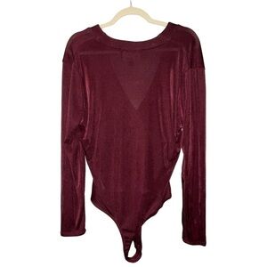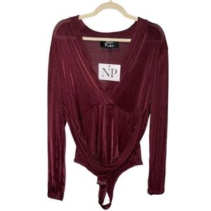 Nina Parker Women’s Trendy Plus Size Crossover Thong Bodysuit Size 2X Burgundy