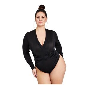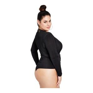 Crossover panels fit and flatter every curve in this plus size thong bodysuit from Nina Parker