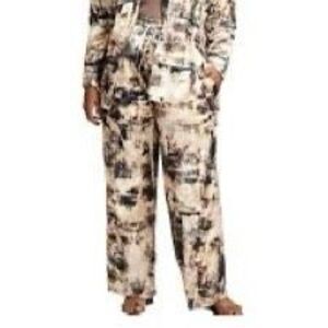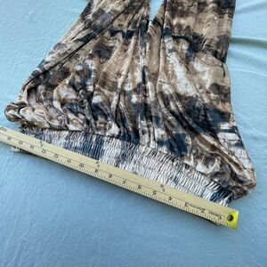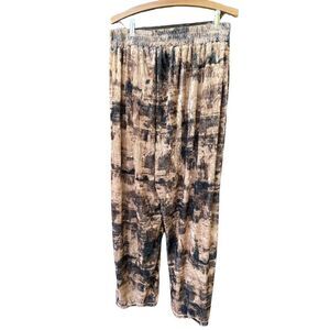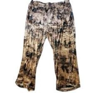 Nina Parker size 1X wide-leg pants drapy velvet boho , these have an over shimmer that is slightly gold. Relaxed silhouette in a gorgeous abstract print of earthy tone. Wide elastic waistband.