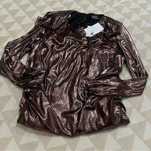 A sultry addition to your collection, this trendy plus size dress from Nina Parker features flattering ruched sides and a modern metallic finish.