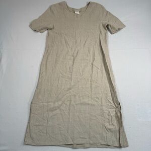 Nina Piccalino Linen Blend Short Sleeve Maxi Dress Womens Size 8 V Neck Oatmeal