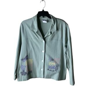 Nina Piccalino Shirt Vintage Womens L Butterfly Notched Button Up Casual Preppy