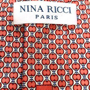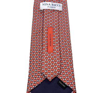 Nina Ricci 100% Silk Couture Necktie w Allover Peach Geometric Pattern